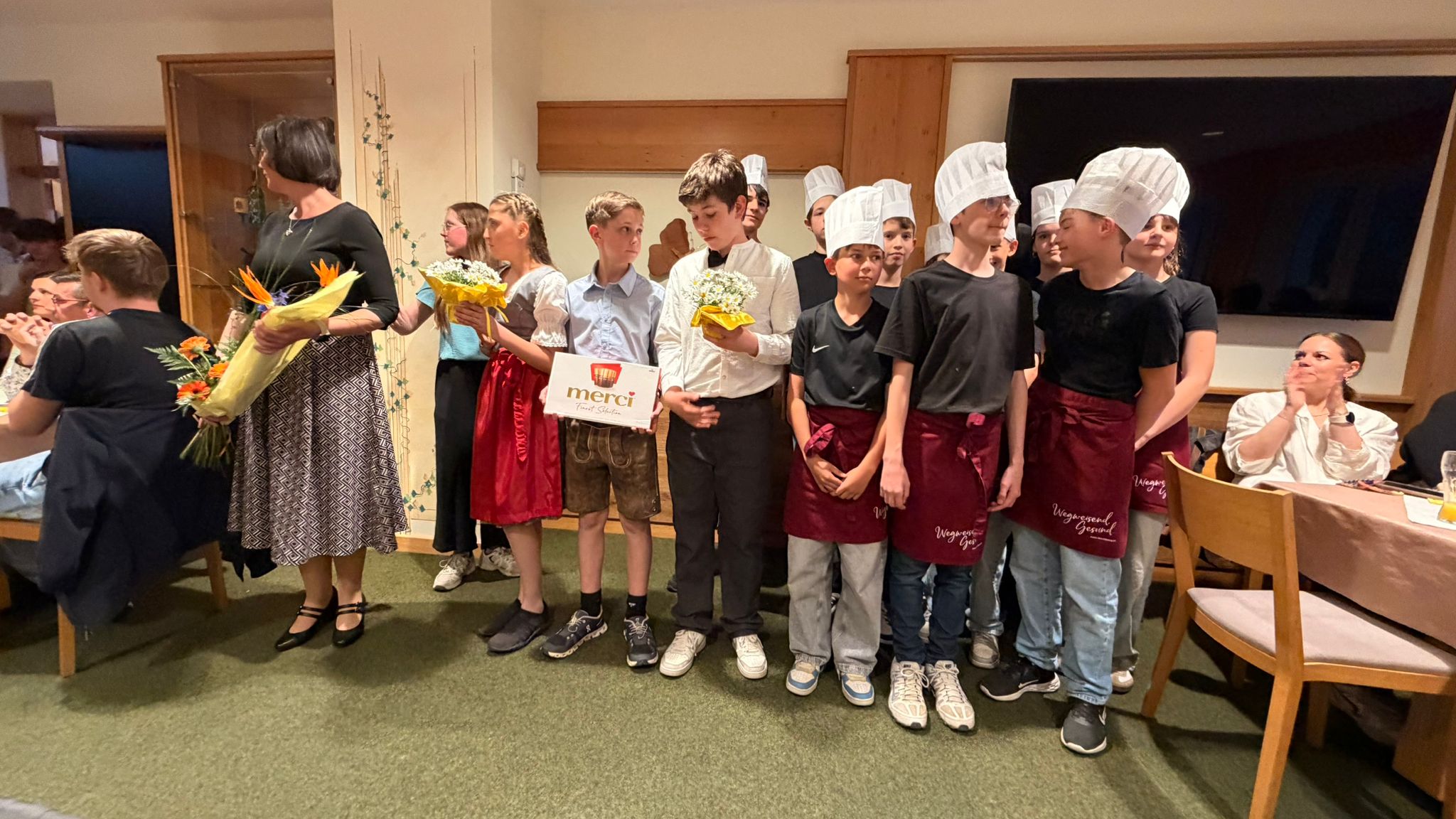 Am Dienstag, dem 28. April, verwandelte sich das Gasthaus Orthof in eine außergewöhnliche Bühne für ein spannendes Krimi-Dinner der Klasse 3ab. Die Schüler:innen versuchten, in Küche und Service ihr Bestes zu geben. Für Eltern und Klassenvorstände wurde ein köstliches dreigängiges Menü zubereitet.