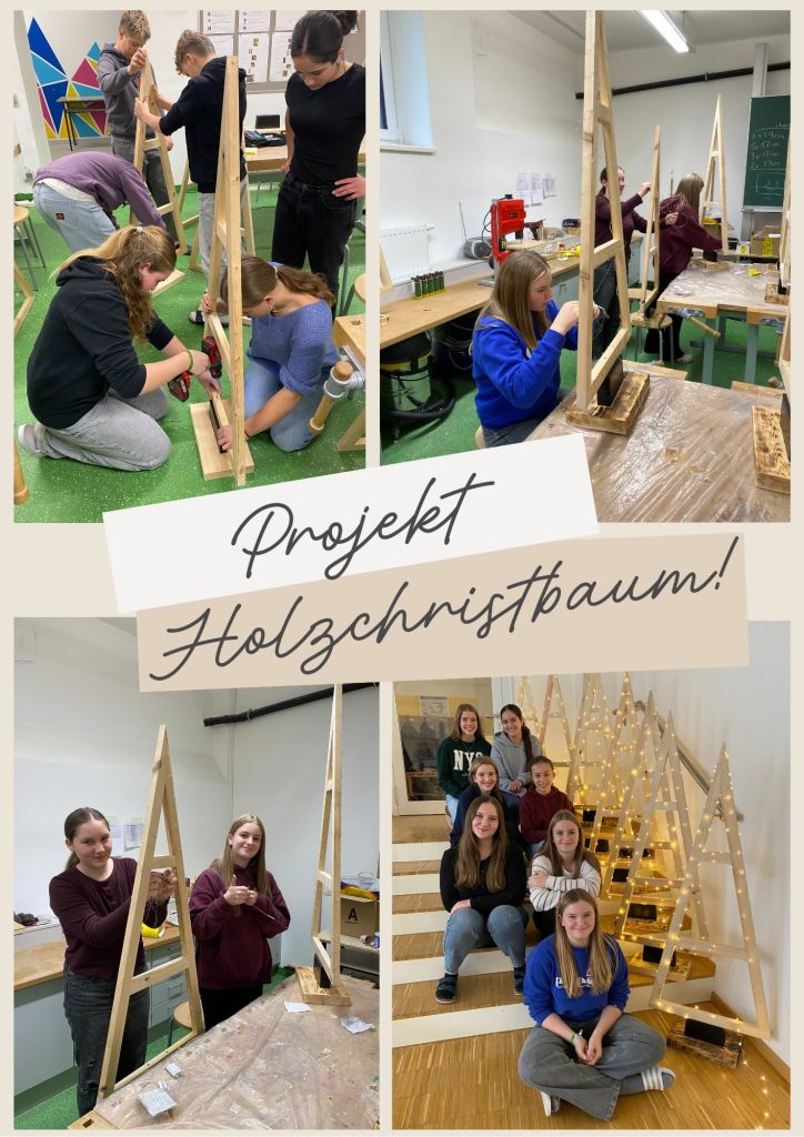 Im Fach „Technik und Design“ widmeten sich die beiden 4. Klassen dem Thema „Christbaum“. Hierfür wurde im Werkunterricht ein Holzchristbaum gemacht, der manch Wohnzimmer, Terrasse oder Vordach in der Advent- und Weihnachtszeit beleuchten wird.