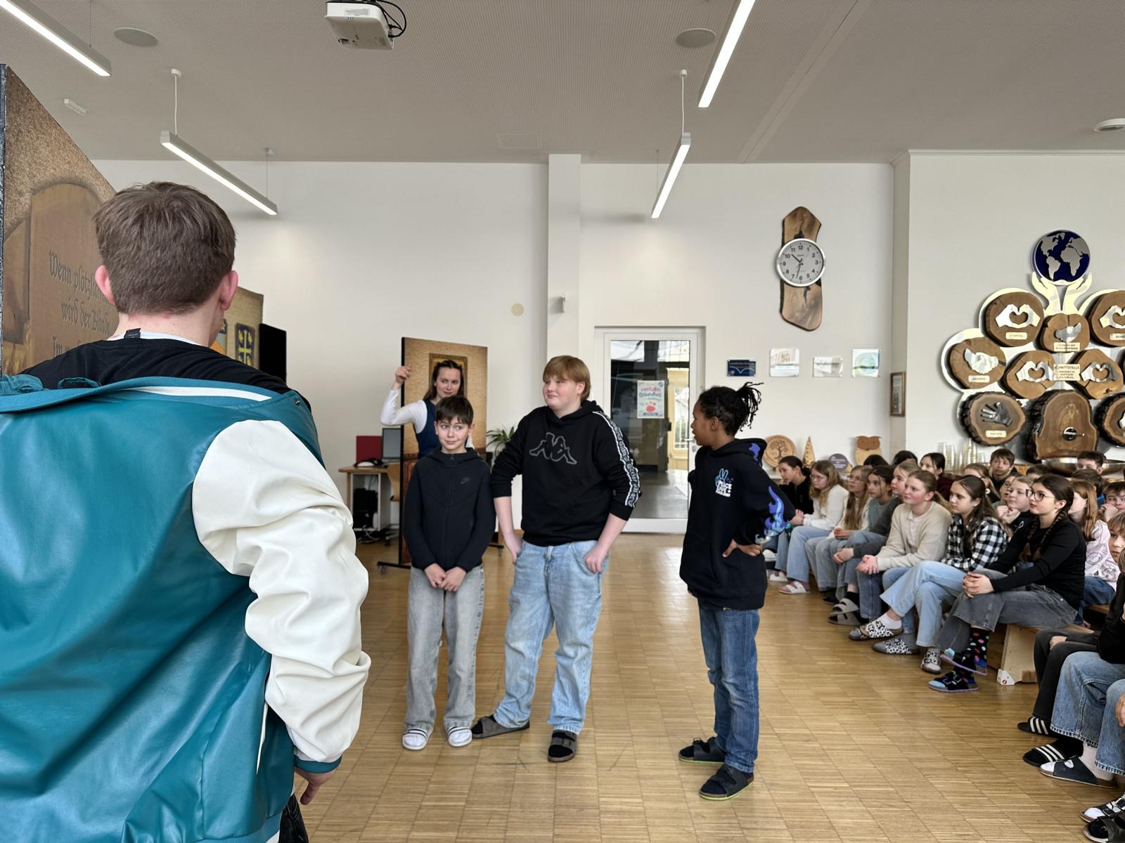 Die Schauspieler:innen verstanden es hervorragend, das Publikum aktiv einzubeziehen und so die Freude an der englischen Sprache zu fördern.„Spooked“ war nicht nur unterhaltsam, sondern auch eine wertvolle Ergänzung zum Englischunterricht – ein Theatererlebnis, das bei den Kindern sicher noch lange in Erinnerung bleiben wird. Danke für diesen abwechslungsreichen, englischen Vormittag.See you next year! 🙂