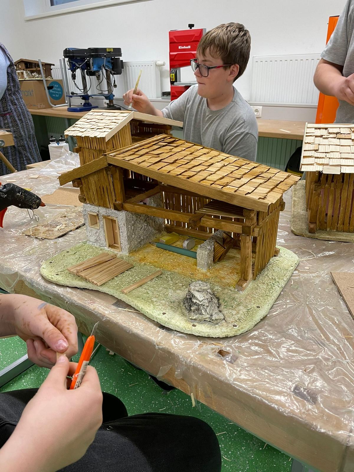 Für unsere Krippenbauer:innen geht es nun in die finale und heiße Phase. Wird bereits seit Ende September an den Krippen der Schüler:innen gebaut, fehlen nun nur mehr kleine Details und die Werke können mit nach Hause genommen werden.